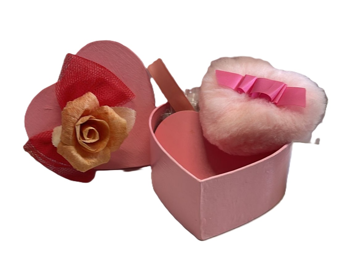 Presentazione originale a forma di cuore contenete il talco e un bellissimo piumino