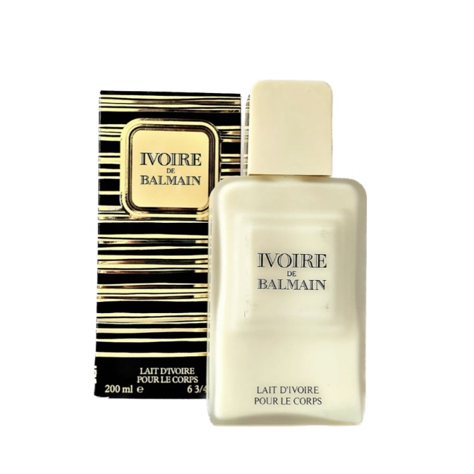 BALMAIN – Ivoire de Balmain è stato creato da Michel Hy e Francis Camail. Le note di testa sono Aldeidi, Camomilla, Galbano, Calendula, Assafetida, Artemisia, Bergamotto, Limone, Mandarino e Violetta; le note di cuore sono Rizoma di Iris, Garofano, Narciso, Noce Moscata, Pepe, Iris, Rosa Turca, Ylang Ylang, Gelsomino, Mughetto, Neroli, Cannella e Lampone; le note di base sono Muschio di Quercia, Vetiver, Sandalo, Incenso, Patchouli, Labdano, Muschio, Fava Tonka, Ambra e Vaniglia. Lanciata nel 1979