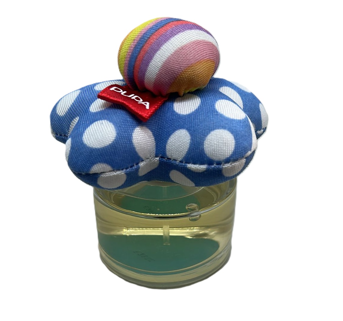 Profumo da collezione con morbido tappo in stoffa a forma di fiore. Disponibile in 6 diversi colori.: