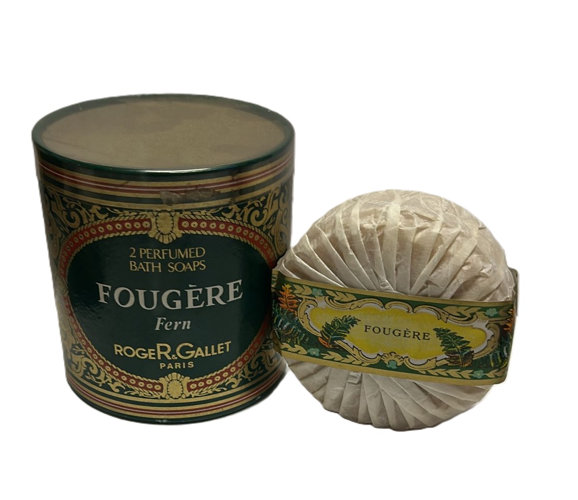 Bellissima confezione vintage decorata di 2 Saponi Profumati Fougère – Fern (profumazione Felce) contenente 2 saponi da 150 gr