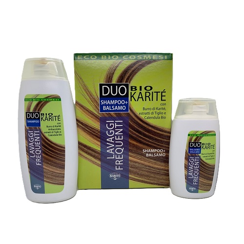 Lo shampoo Duo Bio Karité Lavaggi Frequenti è stato formulato con tensioattivi molto delicati derivati dal glucosio e dal burro di Karité. Contiene proteine idrolizzate di Riso che migliorano la morbidezza e l’elasticità dei capelli, oltre a svolgere una funzione antistatica. Gli estratti Bio di Calendula e Tiglio hanno una funzione filmogena, protettiva ed addolcente, permettendo un uso più frequente anche dopo il contatto con il cloro della piscina e l’acqua del mare. Il complesso condizionante a base di Lisolecitina e PCA Gliceril Oleato migliora il volume e la pettinabilità della capigliatura che resta soffice e luminosa.