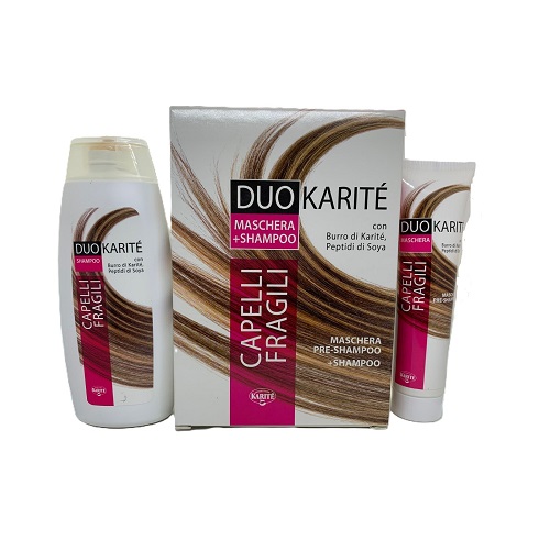 SOCIETA’ DEL KARITE’, Duo Karitè, Maschera pre-Shampoo 50 ml + Shampoo 200 ml, Capelli Fragili